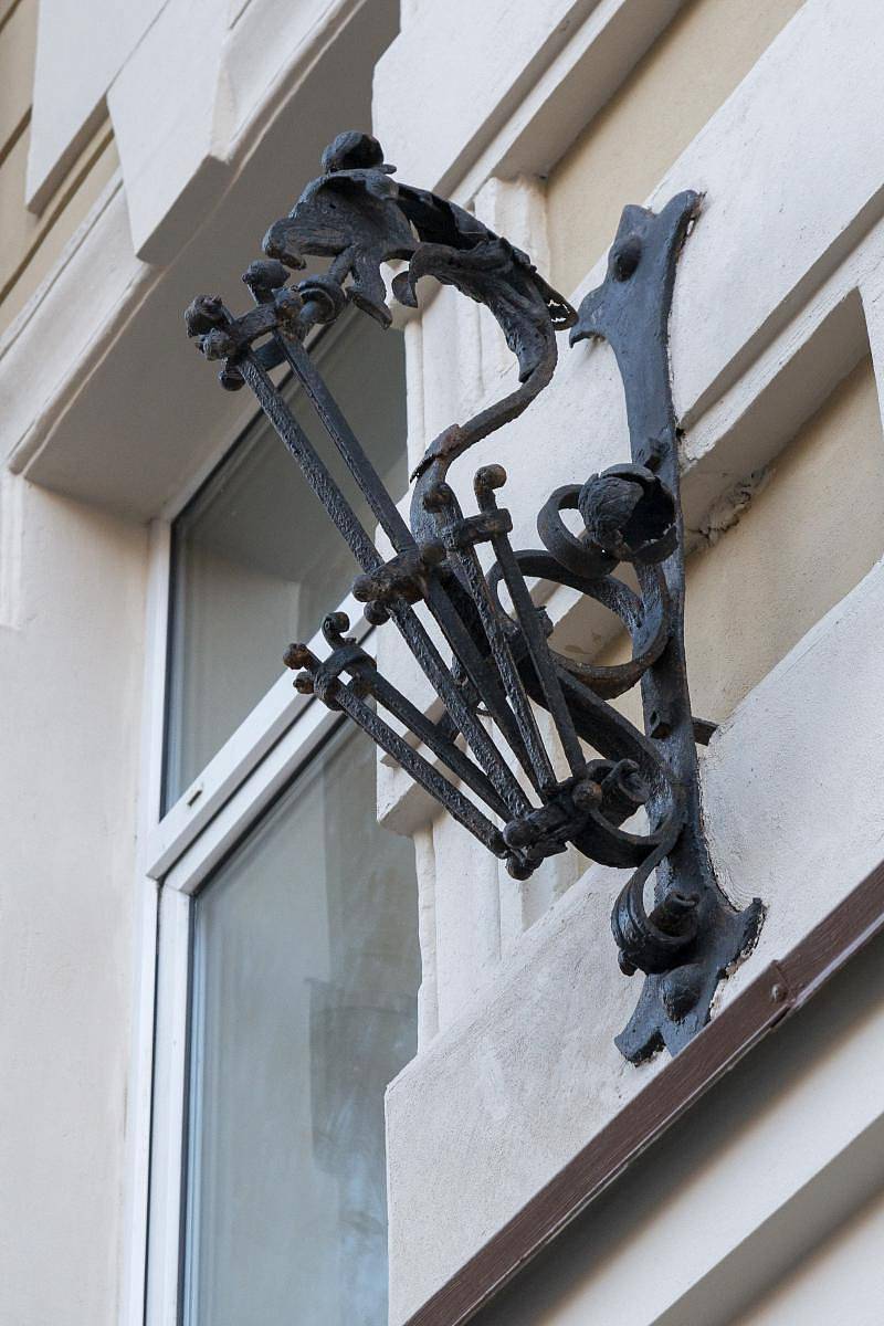 Также по историческому образцу было воссоздано четыре флагштока на лицевом фасаде: один флагшток был утрачен, оставшиеся более чем на 50% были поражены сквозной коррозией (металл рассыпался в руках) и ремонту данные элементы не подлежали.