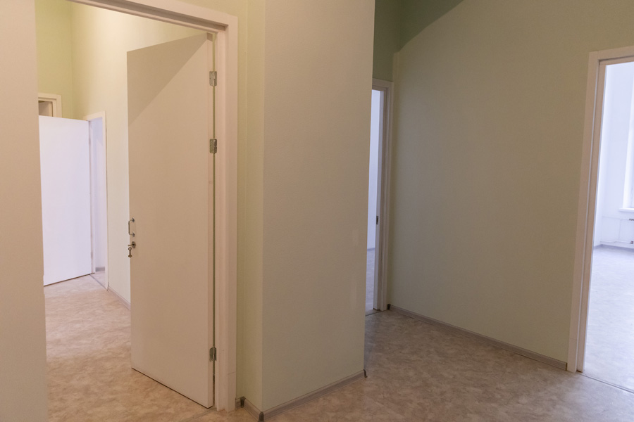 Это здание 1912 года постройки имеет конструктивную схему с системой наружных и внутренних продольных и поперечных несущих стен. В результате освидетельствования технического состояния стен было выявлено аварийное состояние конструкции перекрытий лестничной клетки №1 и несущих стен находятся, а также различные дефекты и повреждения: трещины более 3 см, обрушение отделочных слоев, выпадение отдельных кирпичей в местах сопряжения с потолком, поражение коррозией на 80% и более по сечению металлических балок, утраты штукатурного слоя, механические повреждения каменных ступеней, их просадка, сколы и утраты керамической плитки, расслоения оснований бетонных плит.