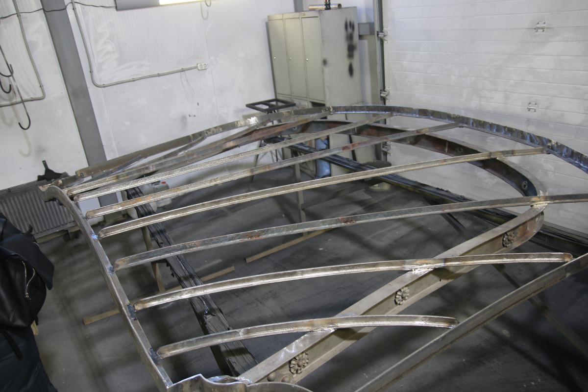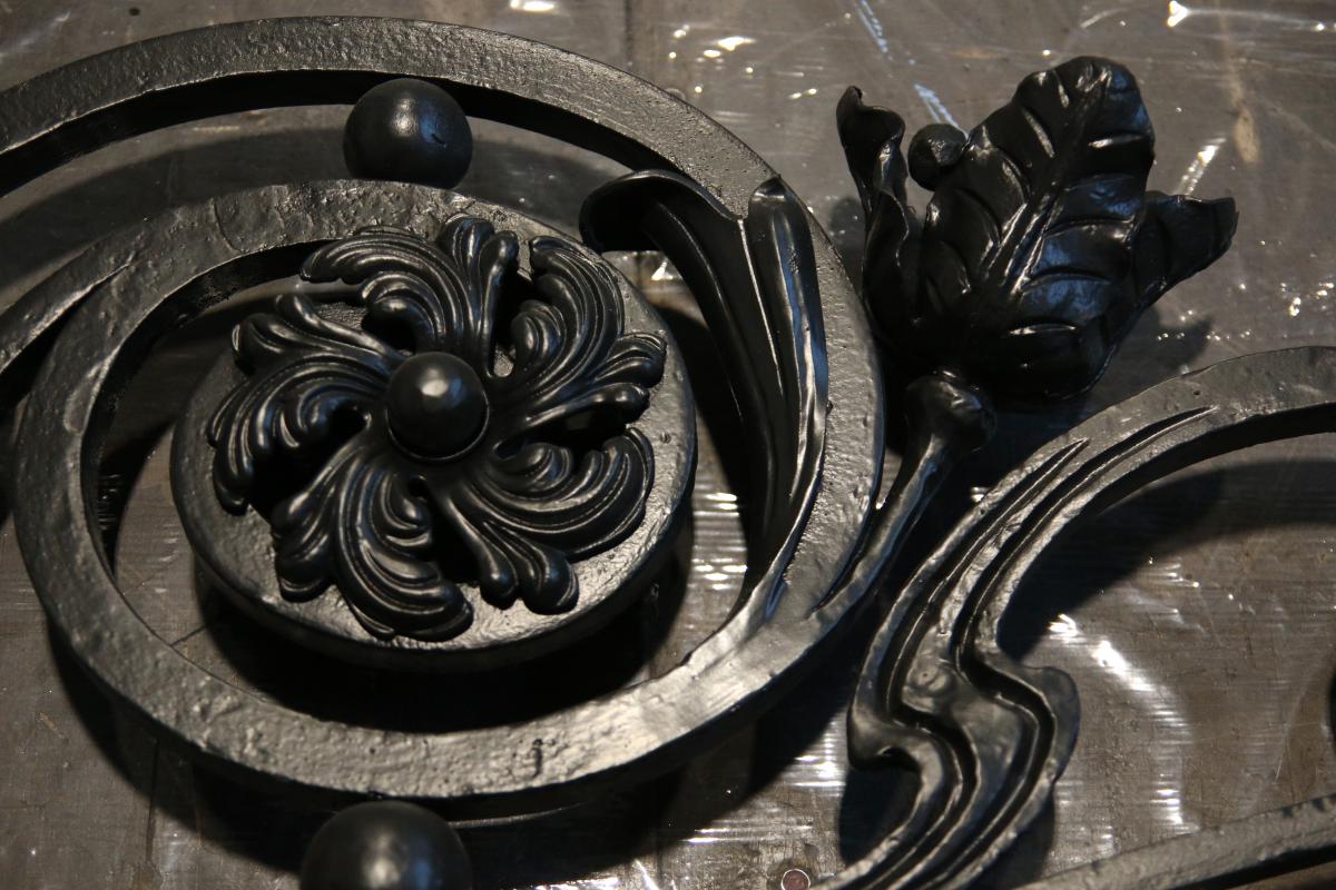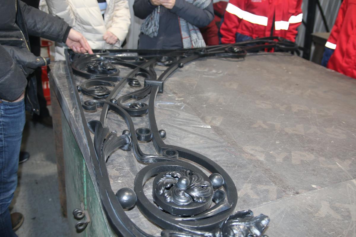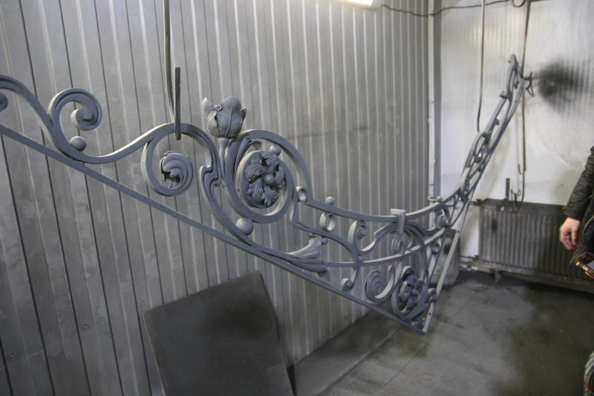 Один из кованых козырьков уже полностью готов, второй восстановлен и находится в окрасочном цехе.