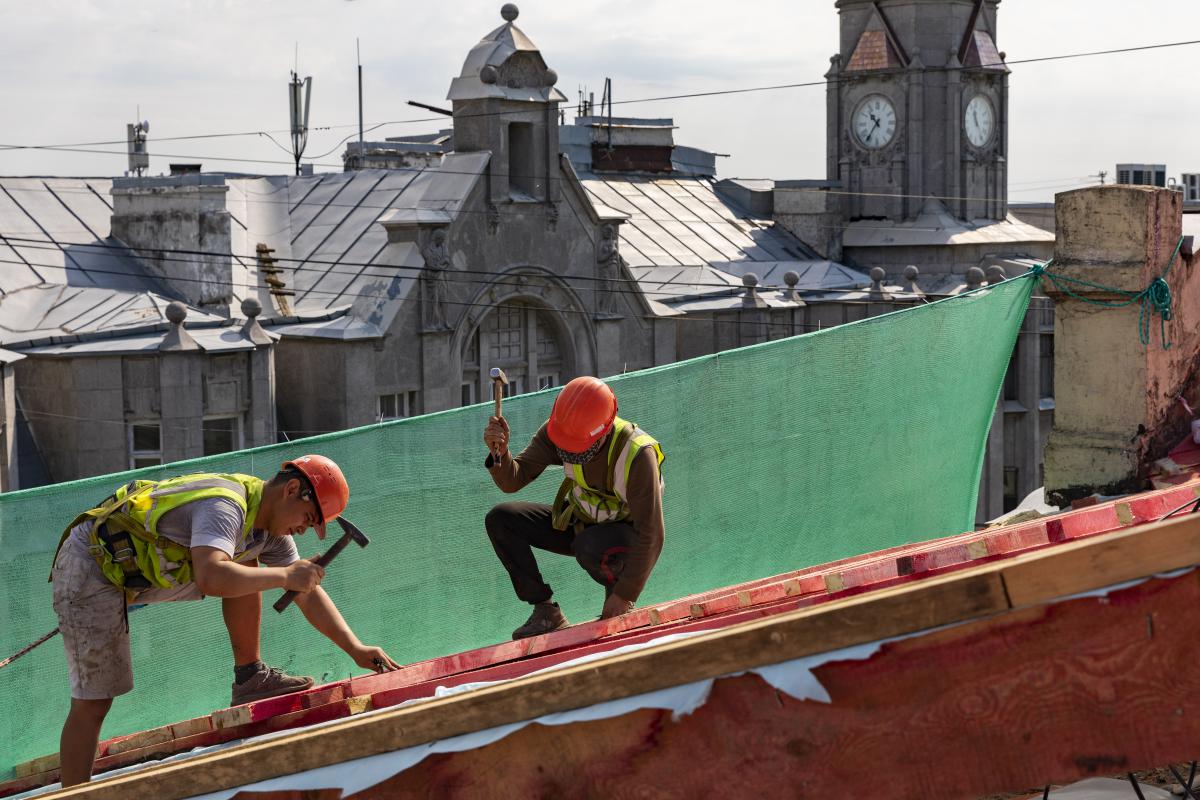 В настоящее время на 60 процентов смонтирована кровля с полной заменой стропильной системы.