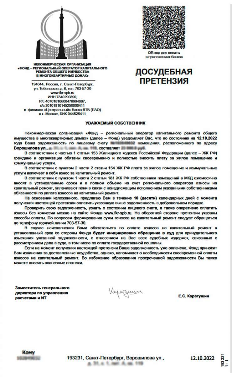 С 24 октября петербуржцы, имеющие долги по взносам на капитальный ремонт, начнут получать досудебные претензии.