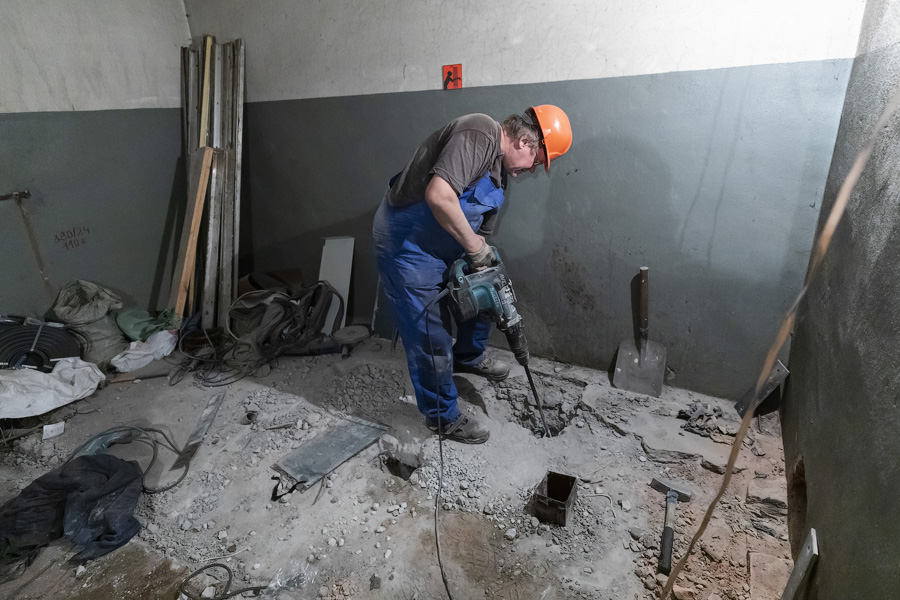 При ремонте лифтов соблюдается квартальный принцип ремонта – оборудование меняется сразу в нескольких домах на улице Марата. Работы выполняет подрядная организация ООО «КУРС».