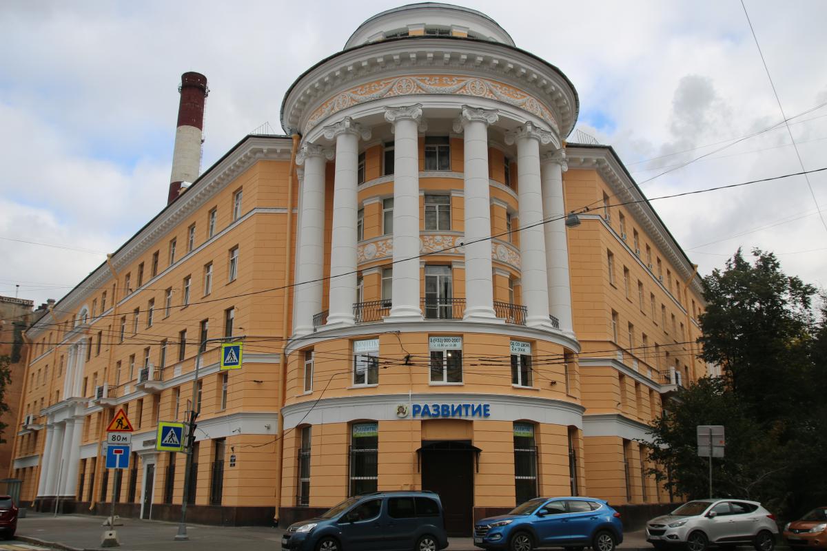 Площадь фасада – более 6300 квадратных метров. Дворовые фасады – работы завершены. Лицевой фасад – расчистка – 30%, ремонт штукатурного поля 1 этажа – 60%. Ведется ремонт балконов. Процент выполнения работ составляет 54%.